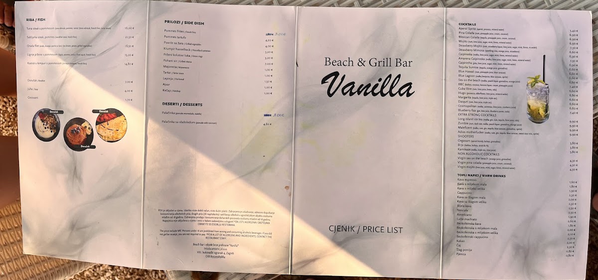 Welcome to Vanilla beach&grill bar, a coastal culinary gem located in Sveti Petar na Moru, Croatia. This vibrant venue combines stunning seaside views with a relaxed atmosphere, perfect for enjoying a meal any time of day.
